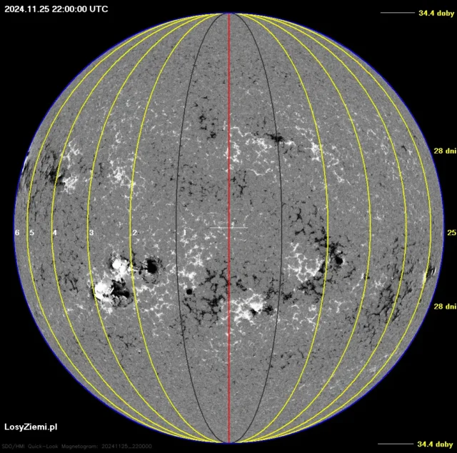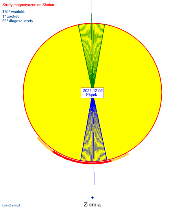 Szczyt silnej strefy magnetycznej wystąpi w piątek 6 grudnia na wprost Ziemi oraz po przeciwnej stronie Słońca. Długość strefy może wynosić aż 22 stopnie. Strefy tworzą się na kilka dni przed szczytami, ich polaryzacja słabnie przez kilka dni po szczytach. W przypadku silnych stref nawet do 6 dni.