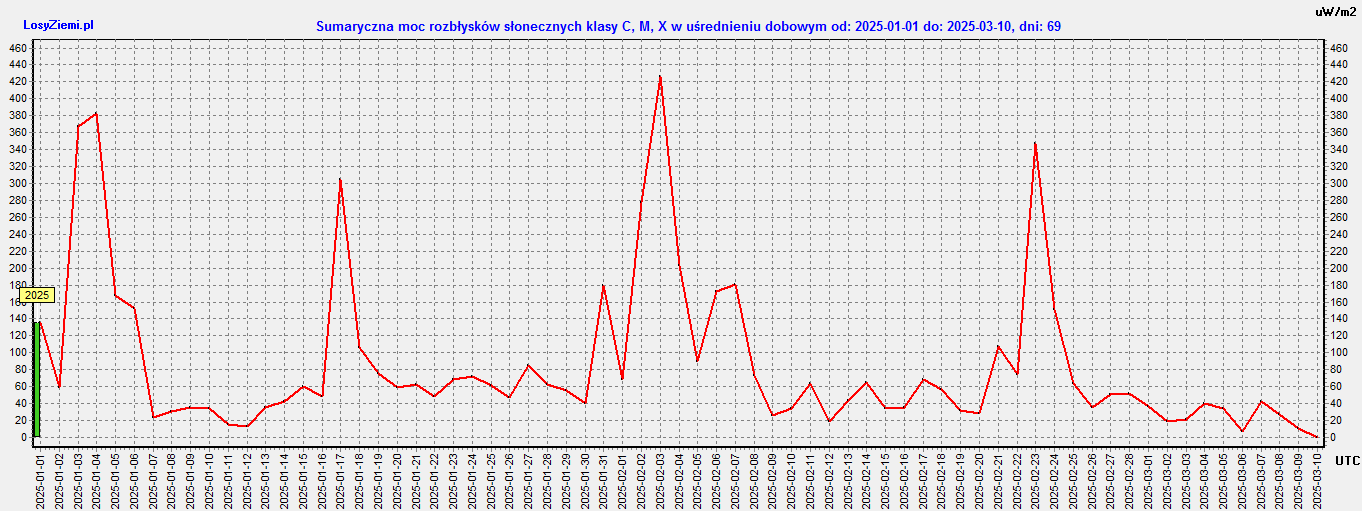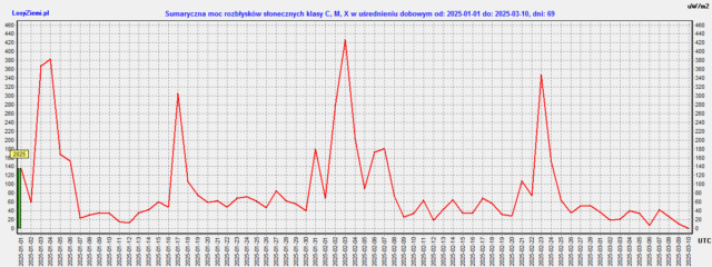 Szczyt średniej siły strefy magnetycznej wystąpi w środę 15 marca na 33 stopniu wschodnim oraz na 147 stopniu zachodnim. Długość strefy może wynosić zaledwie 4 stopnie. Strefy tworzą się na kilka dni przed szczytami, ich polaryzacja słabnie przez kilka dni po szczytach. W przypadku silnych stref nawet do 6 dni.