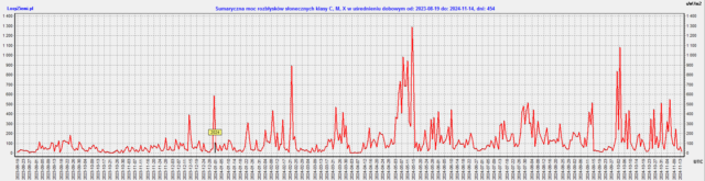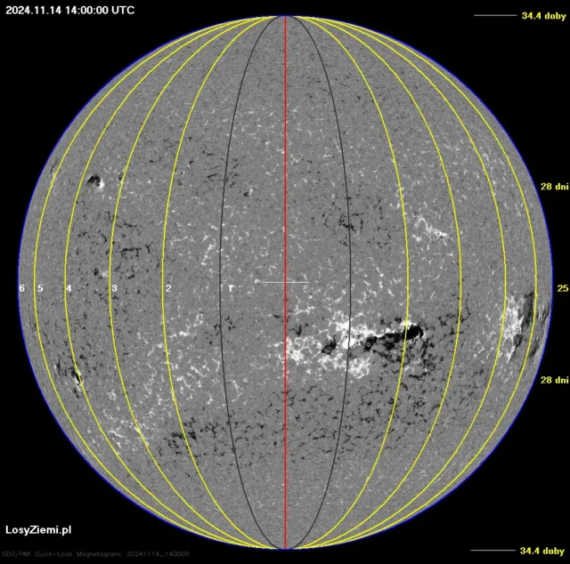 Szczyt średniej siły strefy magnetycznej wystąpi w środę 20 listopada na 70 stopniu wschodnim oraz na 110 stopniu zachodnim. Długość strefy może wynosić 8 stopni. Strefy tworzą się na kilka dni przed szczytami, ich polaryzacja słabnie przez kilka dni po szczytach. W przypadku silnych stref nawet do 6 dni.