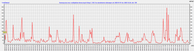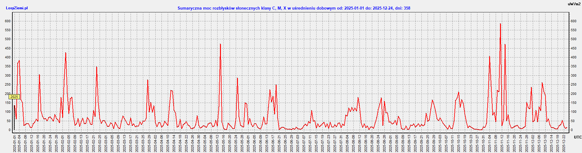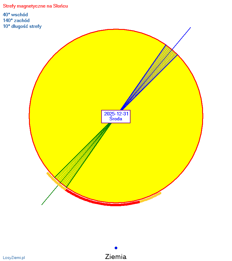 Szczyt średniej siły strefy magnetycznej wystąpi w środę 31 grudnia na 40 stopniu wschodnim oraz na 140 stopniu zachodnim. Długość strefy może wynieść około 10 stopni. Strefy tworzą się na kilka dni przed szczytami, ich polaryzacja słabnie przez kilka dni po szczytach. W przypadku silnych stref nawet do 6 dni, przy czym nie są to zmiany liniowe, a duży wzrost widoczny jest zazwyczaj dopiero po połowie tego czasu.