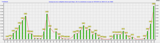 Aktywność Słońca w 2024 roku była wyjątkowo duża, większa od tej z 1989 roku, o czym wkrótce napiszę.