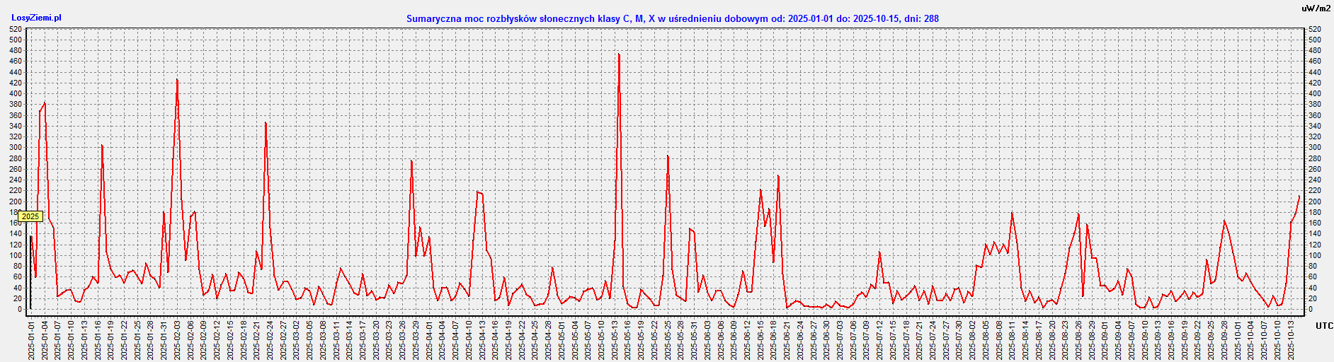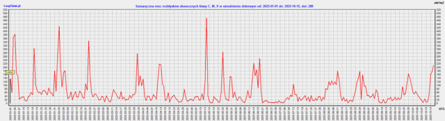 Pierwszy z rozbłysków wystąpił na 39 stopniu zachodnim, kolejny na 41 stopniu, a ostatni z najsilniejszych na 46 stopniu. 15 października mieliśmy największą aktywność naszej Gwiazdy od 19 czerwca.