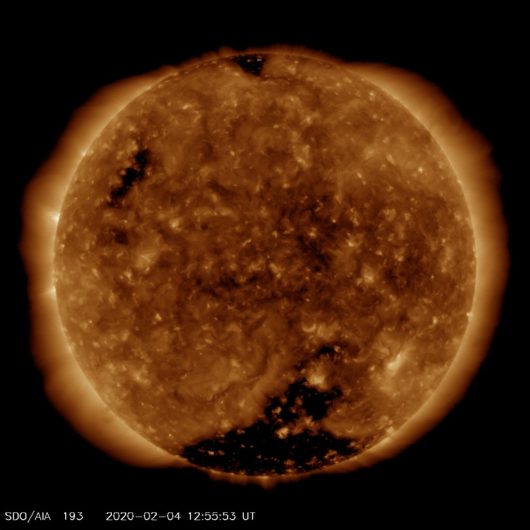 Jeśli dziura koronalna „rozrośnie się” na północ, strumień elektronów w dużej części minie Ziemię, a jeśli w kierunku równika, wywoła na Ziemi średniej siły burzę jonosferyczną od 6-8 lutego, a po tym burzę geomagnetyczną.