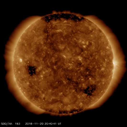 W sobotę, 24 listopada na równiku Słońca znajdzie się niewielka dziura koronalna, z której emisja elektronów trwać będzie od 23-25 listopada.