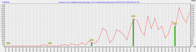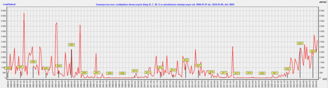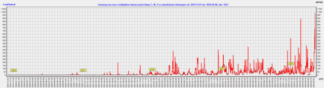 Mamy dopiero 4 miesiące i 8 dni 2024 roku, a sumaryczna energia rozbłysków przekroczyła już 15.5 mW/m2