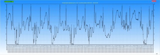 Poniżej energia drgań magnetycznych 1-8 maja w osi Y.