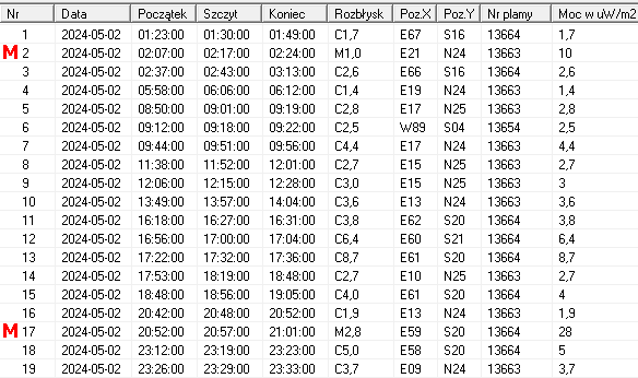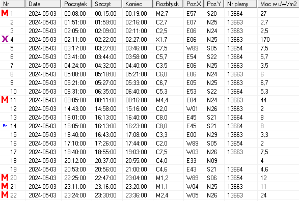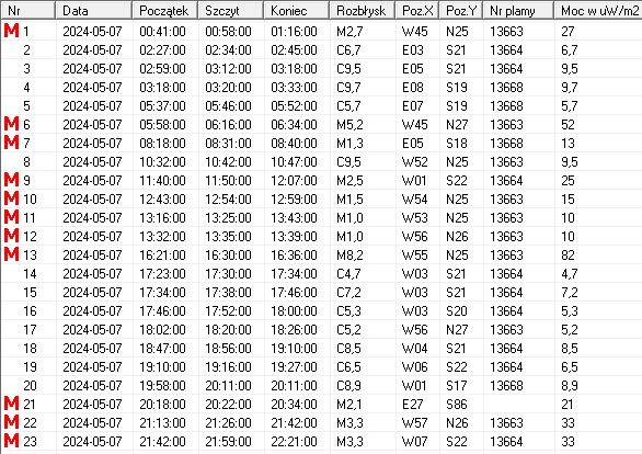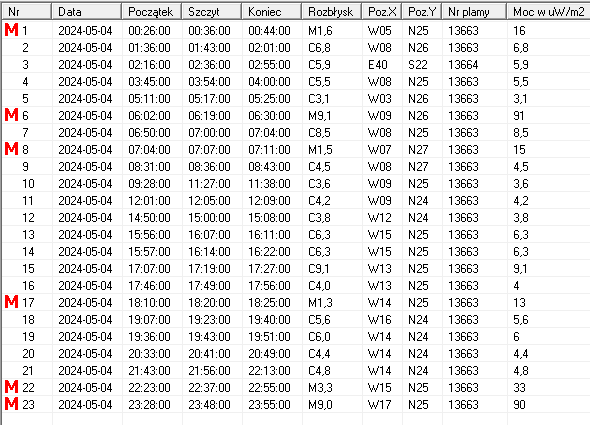 Od początku 25. cyklu słonecznego (1 grudnia 2019 roku) mieliśmy 799 silnych rozbłysków klasy M i 29 bardzo silnych klasy X. Od 1 maja 2024 roku, czyli przez 8 dni mieliśmy 60 silnych rozbłysków klasy M i 7 bardzo silnych klasy X.