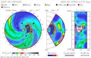 W poniedziałek 8 maja o 0:34 czasu w Polsce na Słońcu wystąpił silny rozbłysk klasy M1.5, kolejny wystąpił o 1:23 klasy M1.6, oba z plamy 3296, która w czasie rozbłysku znajdowała się zaledwie 5 stopni na zachód. Oba rozbłyski wygenerowały duży wyrzut plazmy (CME), ale to z drugiego plazma poleciała w naszą stronę. NASA prognozuje … Czytaj dalej Słońce – Wystąpił bardzo groźny wyrzut plazmy w kierunku Ziemi, na wtorek prognozowana jest burza geomagnetyczna