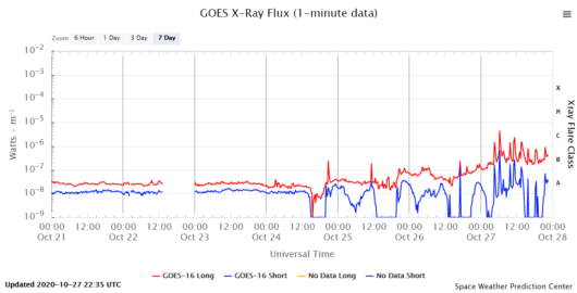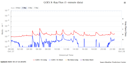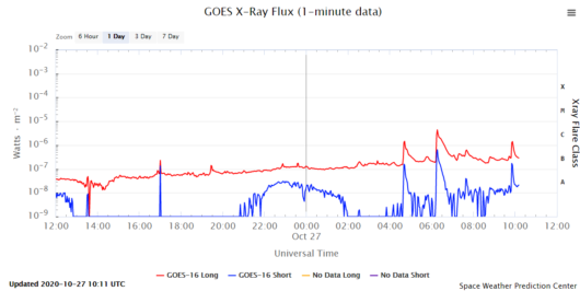 W ciągu ostatnich 6 godzin mocno wzrasta aktywność plamy 2778, która w niedzielę 25 października powstała na południu na wprost Ziemi.