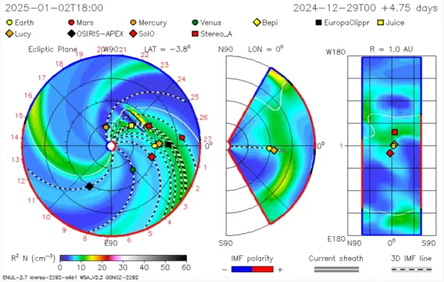W prognozach widać, że plazma o małej gęstości minie nas od zachodu 2 stycznia.
