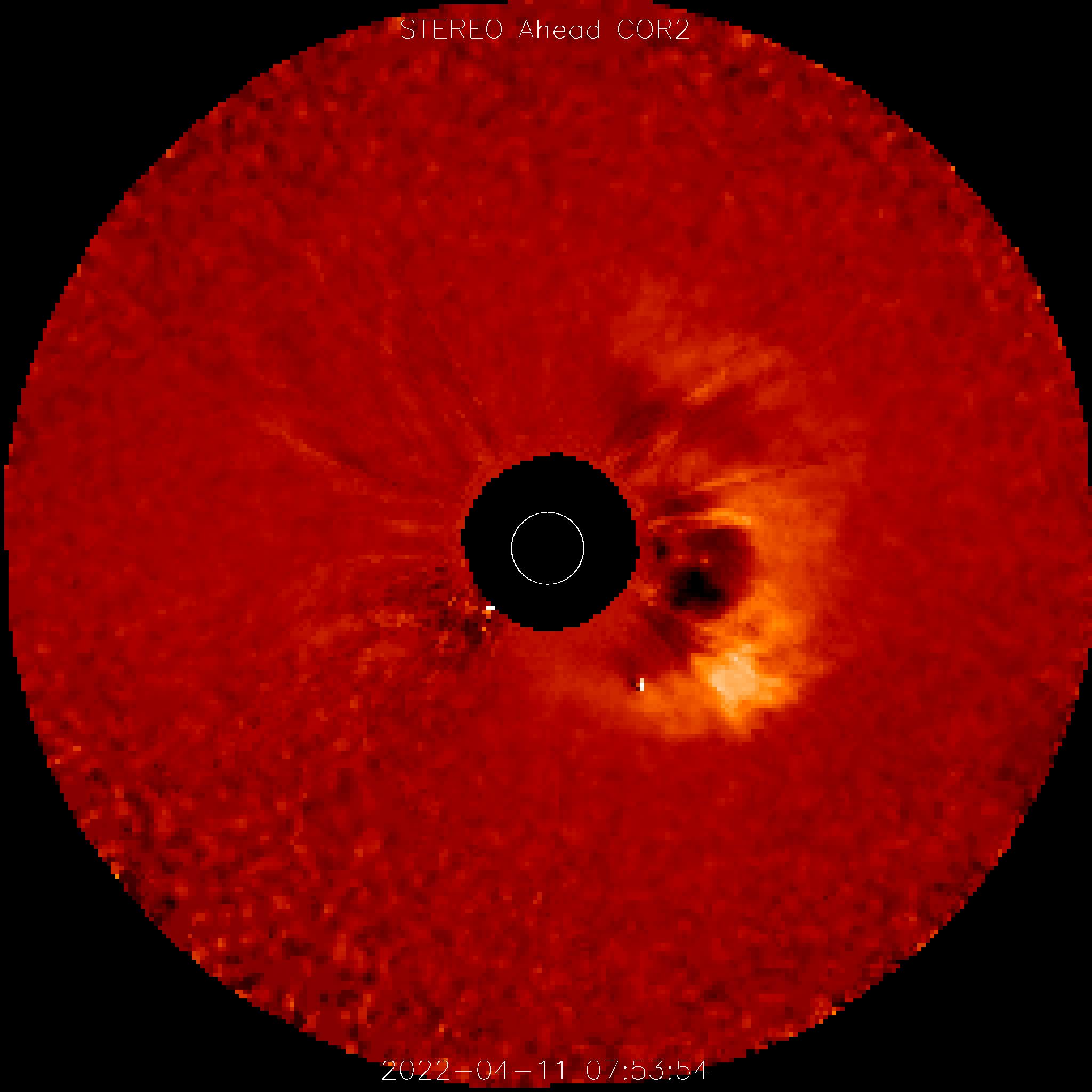 W poniedziałek 11 kwietnia około 8-mej czasu w Polsce (UTC+2) na Słońcu z pozycji na wprost Ziemi nastąpił bardzo duży wyrzut plazmy.