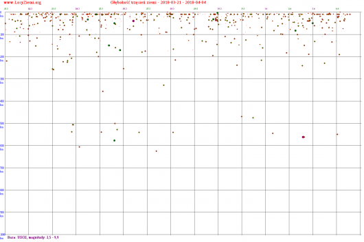 2 kwietnia o 13:40 UTC w Boliwii wystąpiło silne, ale głębokie trzęsienie ziemi, magnituda 6.8 w skali Richtera, głębokość 562 km.