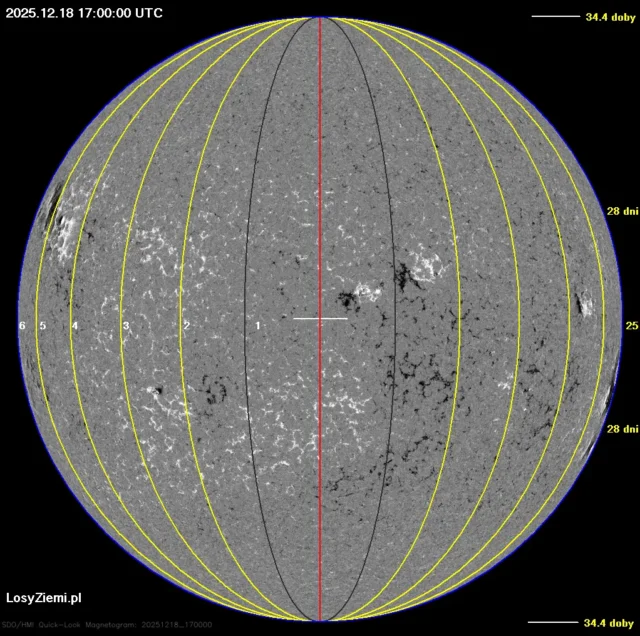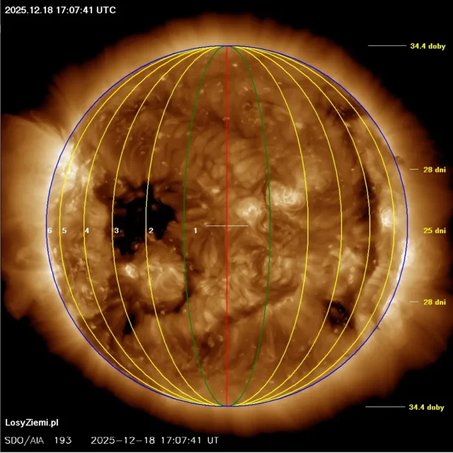 Od wschodu tarczy Słońca zbliża się kolejna duża dziura koronalna, która już w piątek 19 grudnia zacznie emitować elektrony i wiatr słoneczny w kierunku Ziemi.