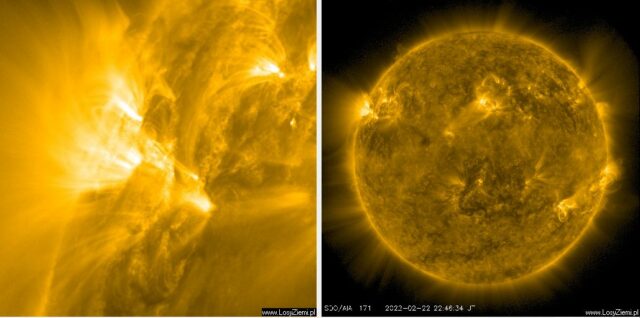 Od wschodu tarczy Słońca zbliża się sporej wielkości dziura koronalna, która już w środę 23 lutego zacznie emitować w naszą stronę wiatr słoneczny oraz elektrony.