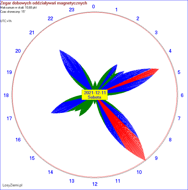 Średniej siły szczyty oddziaływań magnetycznych wystąpią: 11 grudnia między 4:50, a 8:30 czasu polskiego.