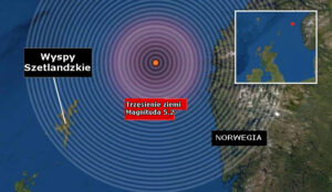 Silny wstrząs sejsmiczny o magnitudzie 5.2 w skali Richtera wystąpił w poniedziałek 21 marca o 5:33 UTC w okolicach Wysp Szetlandzkich na północy Wielkiej Brytanii. Energia wstrząsu wynosiła prawie 4 TJ, czyli 1.1 GWh. Poniżej lista wszystkich wstrząsów sejsmicznych w tym rejonie od magnitudy 5.0 od co najmniej 1973 roku (baza USGS). Jak widać, poniedziałkowy … Czytaj dalej UK – Małe trzęsienie ziemi wstrząsnęło Szetlandami, magnituda 5.2 w skali Richtera, to trzeci najsilniejszy wstrząs sejsmiczny w tym rejonie od co najmniej 1973 roku