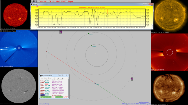 W ciągu ostatnich kilku dni powstał ciekawy dobowy cykl magnetyczny. Poniżej energia drgań dla ostatnich 5 dni. Magnetometr – 19 kwietnia Magnetometr – 20 kwietnia Magnetometr – 21 kwietnia Magnetometr – 22 kwietnia Magnetometr – 23 kwietnia, do 20:00 UTC Energia drgań magnetycznych – 19 kwietnia Energia drgań magnetycznych – 20 kwietnia Energia drgań magnetycznych … Czytaj dalej W ciągu ostatnich 5 dni wystąpił ciekawy cykl magnetyczny
