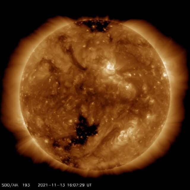 Wszystko rozpoczęło się od pierwszej dużej dziury koronalnej, z której wiatr słoneczny zaczął być emitowany w kierunku Ziemi już 13 listopada.