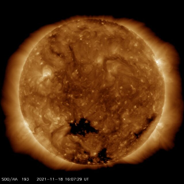 Kolejna dziura koronalna 17-18 listopada również emitowała w naszą stronę wiatr słoneczny.