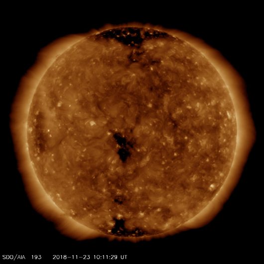 Duża dziura koronalna znajdzie się na Słońcu, na wprost Ziemi 28 listopada, rozciągać się będzie od równika do około 60 stopnia szerokości północnej.