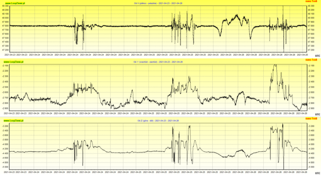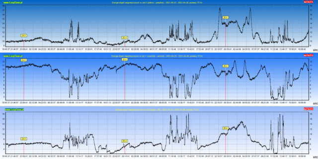 Pomiary magnetometryczne, energia drgań magnetycznych w ziemskim polu z ostatnich 3 dni oraz wpływ na odczuwalność.