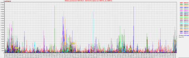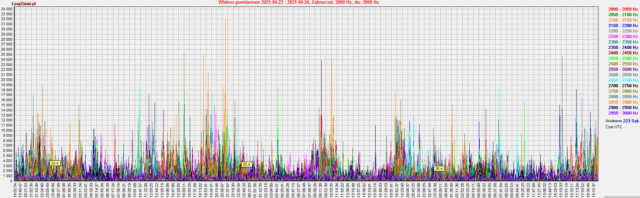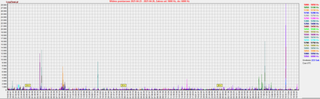 Przeanalizujcie wykresy względem tego, co odczuwaliście w danym czasie (czas UTC). Jeśli wystąpiły wtedy jakieś cykliczne zmiany amplitud, to ich częstotliwości są po prawej stronie – przypisane kolorom. Obserwujcie te wykresy i porównujcie ze swoim samopoczuciem, a także zdarzeniami zewnętrznymi. Pomiar jest w osi pionowej, na 16 stopniu długości geograficznej. Główny wpływ na pomiar ma jonosfera, czyli również cykle dobowe.