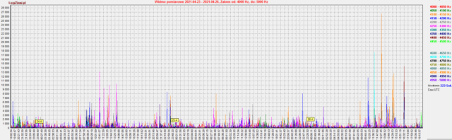 Pomiary częstotliwości składowych ziemskiego pola magnetycznego, wykresy podzielone po 1 kHz od 2 – 6 kHz.